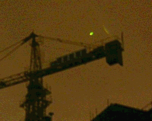 2013年6月6日凌晨,武漢市區(qū)電閃雷鳴。《武漢晨報(bào)》攝影記者石一在機(jī)場(chǎng)高速公路與馬池路交會(huì)處附近的一個(gè)小區(qū)拍攝雷電時(shí),無意中拍到幾個(gè)綠黃色神秘光團(tuán)(圖2、3)。[2]