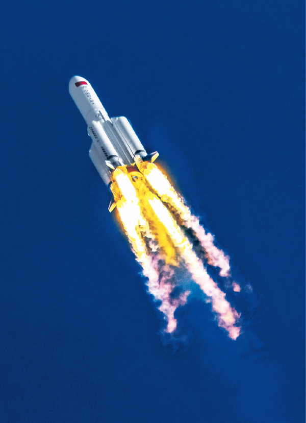 2020年5月5日18時0分,長征五號B運載火箭點火升空,我國載人空間站階段飛行任務(wù)首戰(zhàn)告捷,載人航天工程第三步發(fā)展戰(zhàn)略順利開啟。5月8日13時49分,長征五號B搭載的新一代載人飛船試驗船返回艙在東風著陸場預(yù)定區(qū)域成功著陸,試驗取得圓滿成功。圖為長征五號B運載火箭正在升空。 人民視覺 陳肖/攝