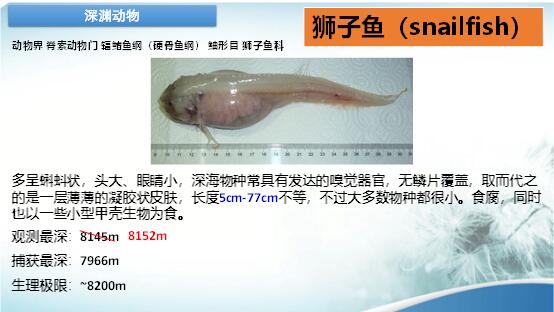 目前,對海斗深淵的生物系統(tǒng)還沒搞清楚。在海斗深淵,壓力是1噸/平方厘米、溫度低、光線暗、幾乎就是黑暗、地震也多。這里的生物的生命真是奇特,能在這樣的環(huán)境中生存和繁殖。我們的儀器下潛到水深萬米一下,也要經(jīng)受1噸/平方厘米的壓力,在設(shè)計上會遇到很多問題。